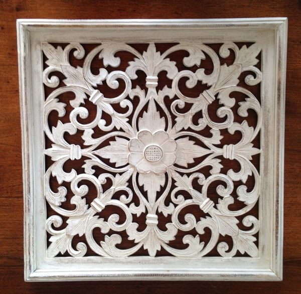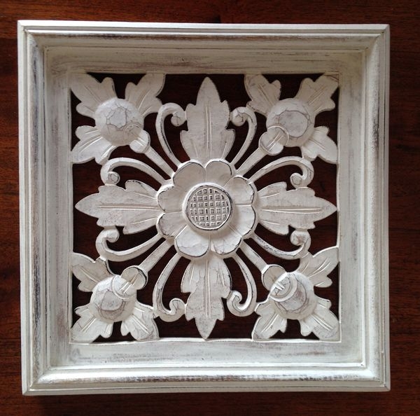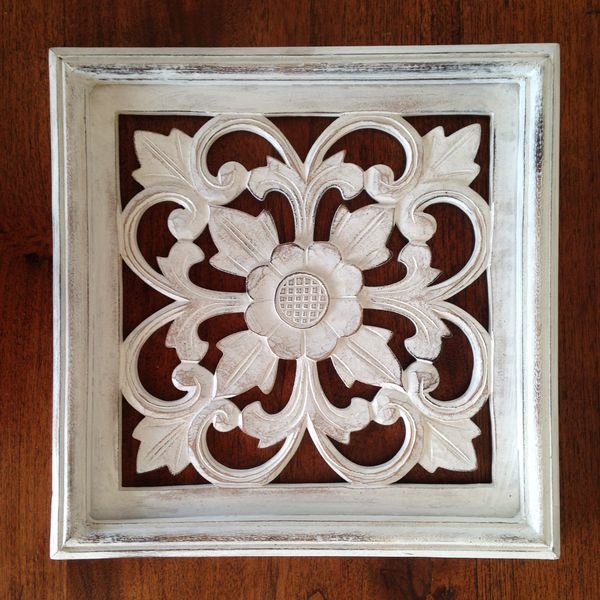 木彫り風 パネルホワイトウォッシュ 30cm