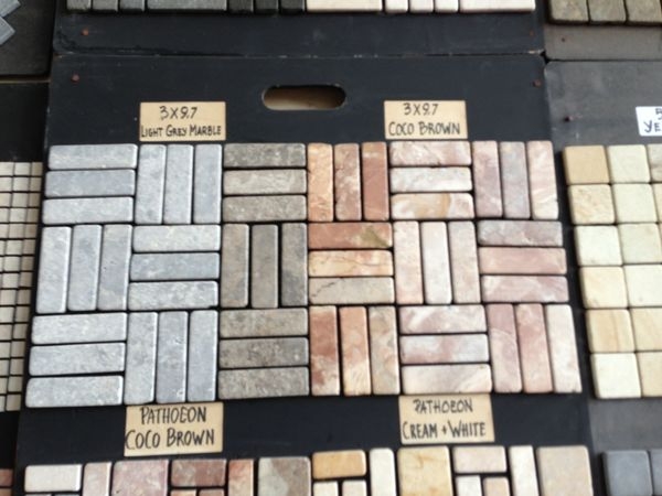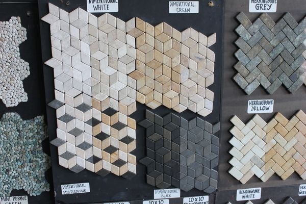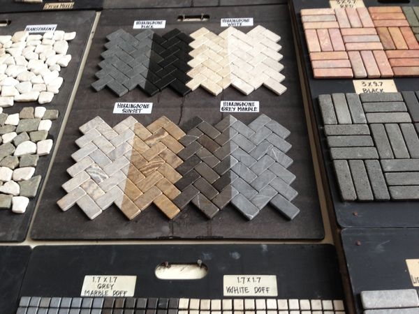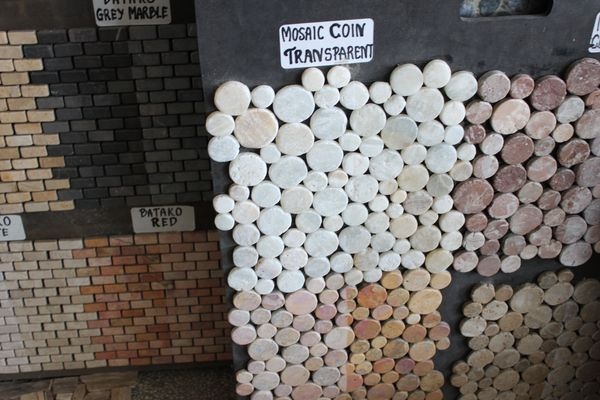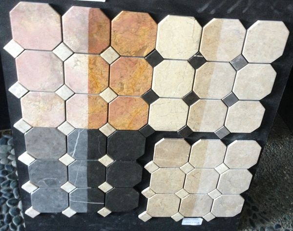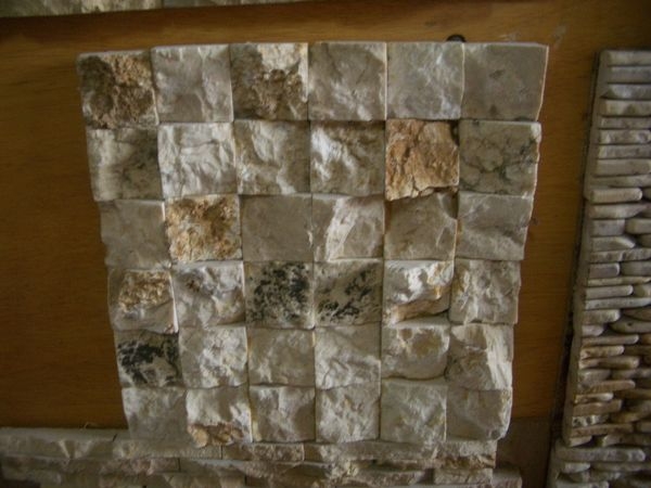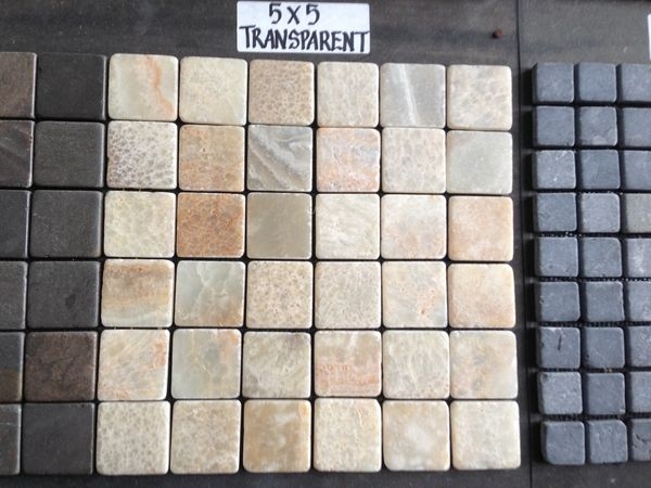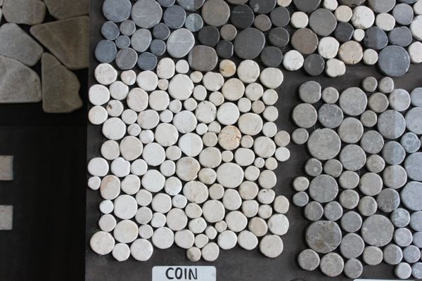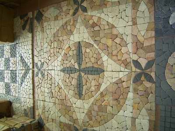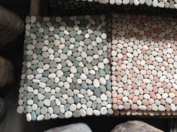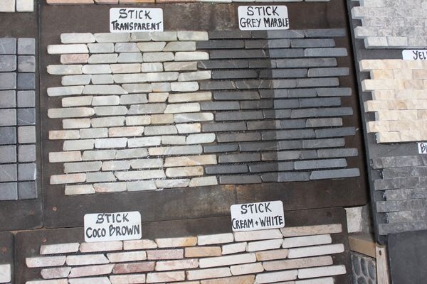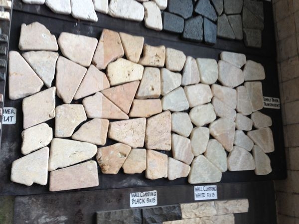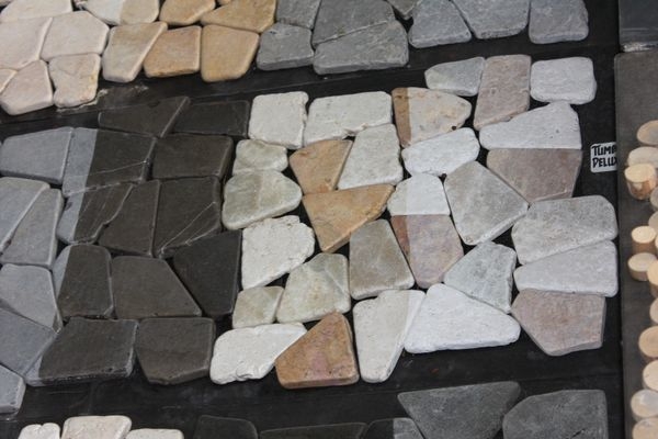 カラーバリエーション豊かな石のタイル、ネットに貼ったパネル状の商品は簡単に施工出来ます。オリジナルの柄もオーダー可能です。